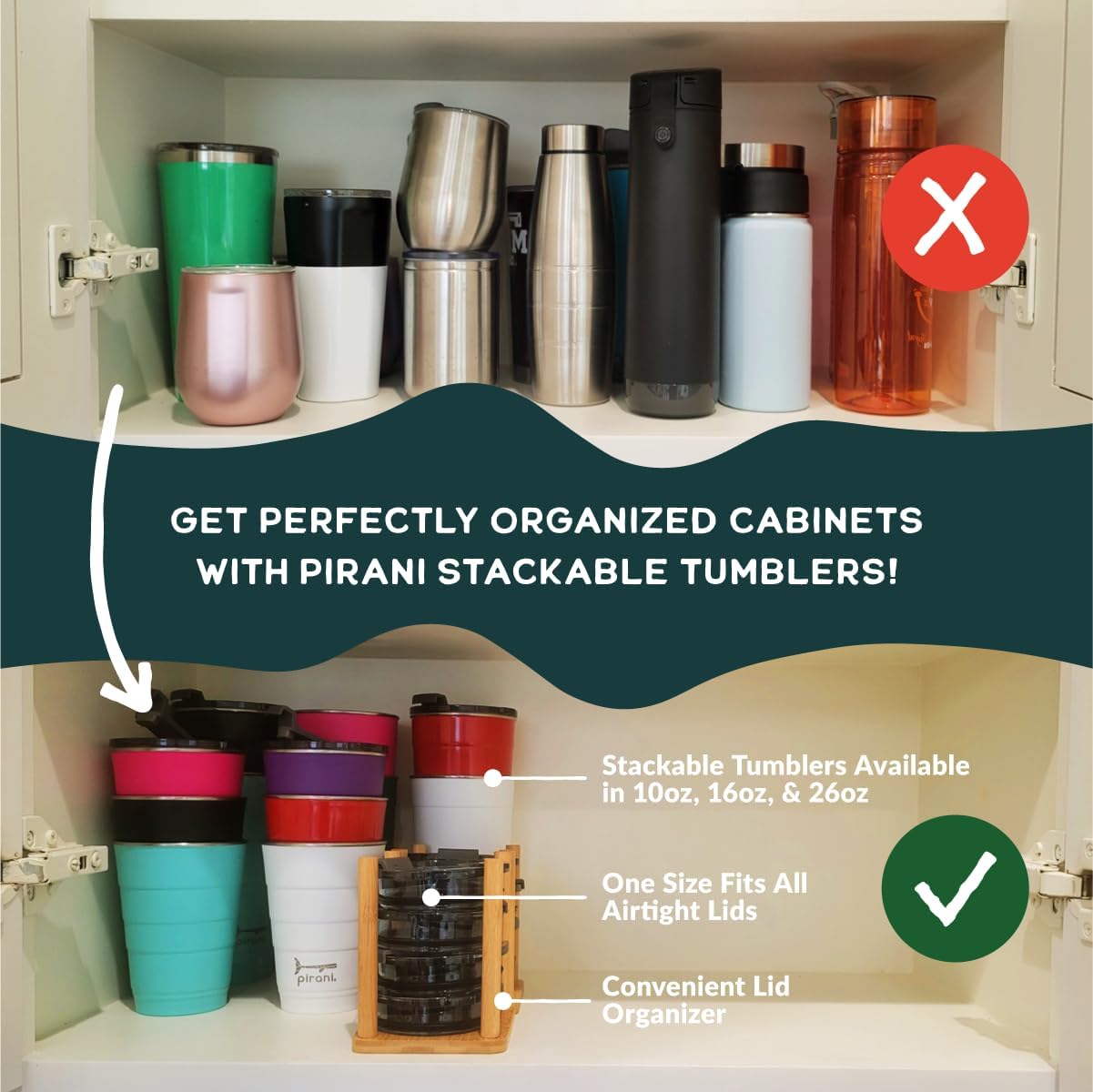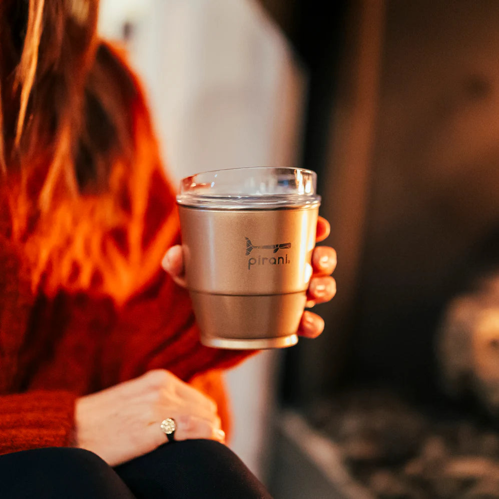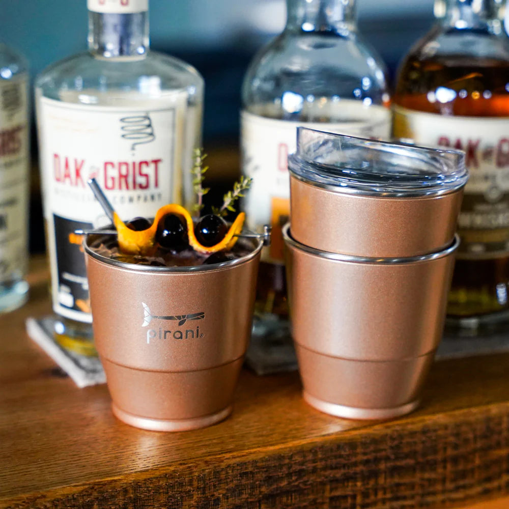 Elevate your outdoor Pirani experiences with our NEW 10oz stackable insulated wine and whiskey sip and stacker - the ultimate companion for poolside lounging, back deck gatherings, and adventuring sustainably! Keeps your drinks cold 6+ hours and hot up to 3. Its 1mm thick lid ensures every sip mimics the elegance of a fine glass of wine, while the interchangeable feature with our airtight lids adds convenience to your on-the-go lifestyle. Plus, with stackable compatibility across our entire line, organizing your cabinets has never been easier!!