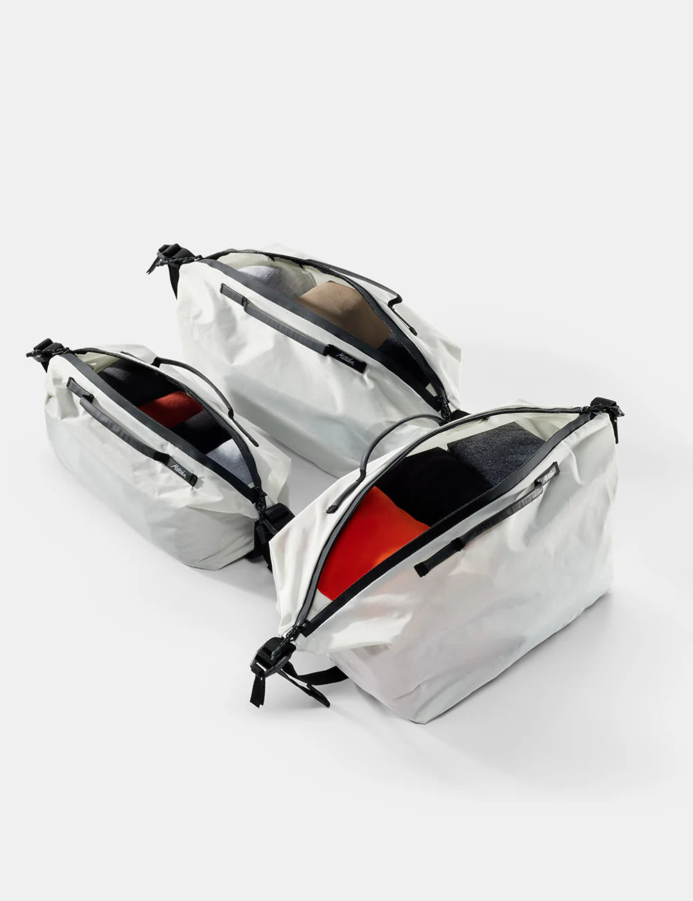 Designed to organize and stow anything from gear and equipment to clothing and shoes. Load these bucket-format cubes to the top, zip, and cinch for fast and efficient compression. Organize the inside of your travel pack or grab the handles and take them with you. These gear cubes are built for function forward organization without the fuss—just stuff, stow, and go.