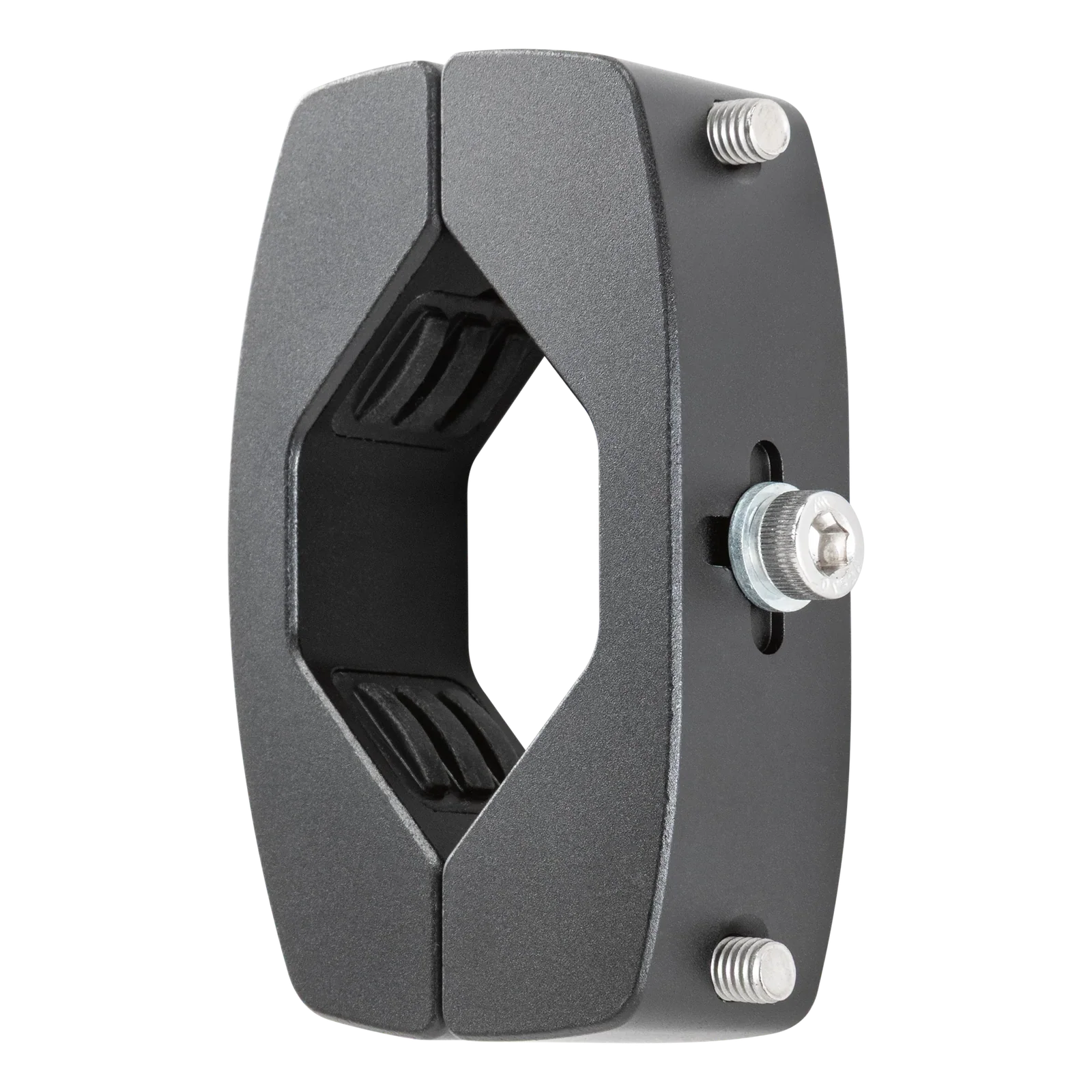This overbuilt billet aluminum clamp attaches to any round bar (0.95"–2.25") with reversible silicone grip pads that hold tight, creating a flat, stable surface ready for light bars, speakers, RotopaX mounts, or traction boards.