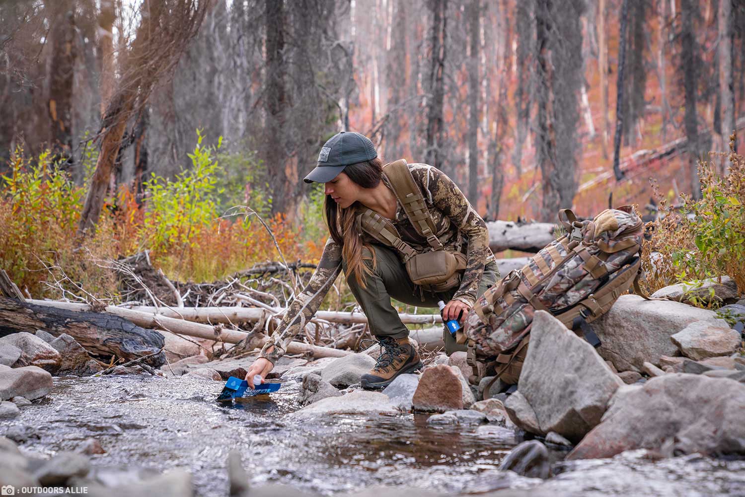 Simply fill up the pouch of your choice at a lake, stream or river, screw the filter directly onto the pouch and :