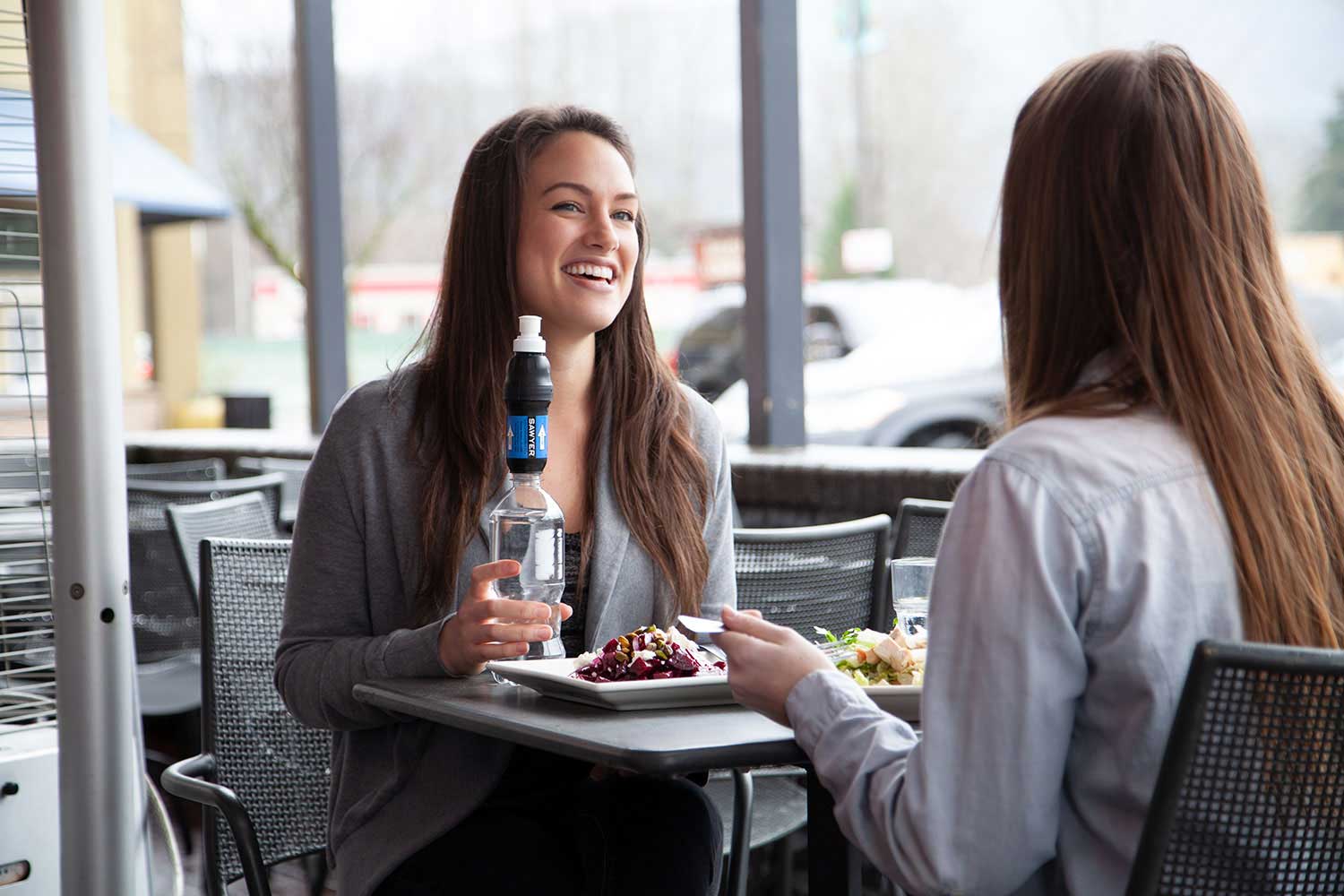 2) Drink directly from the filter which has a built in push pull cap for on/off functions.
